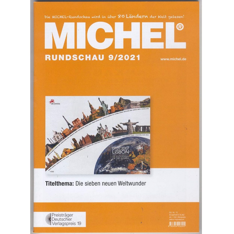 Ajakiri-kataloog Michel Rundschau.Nr. 9/2021Formaat: 150 x 210 mm.98 värvilise lehekülje.Saksa keeles.Hinnad EUR-s.Tootja: Michel (Saksamaa).