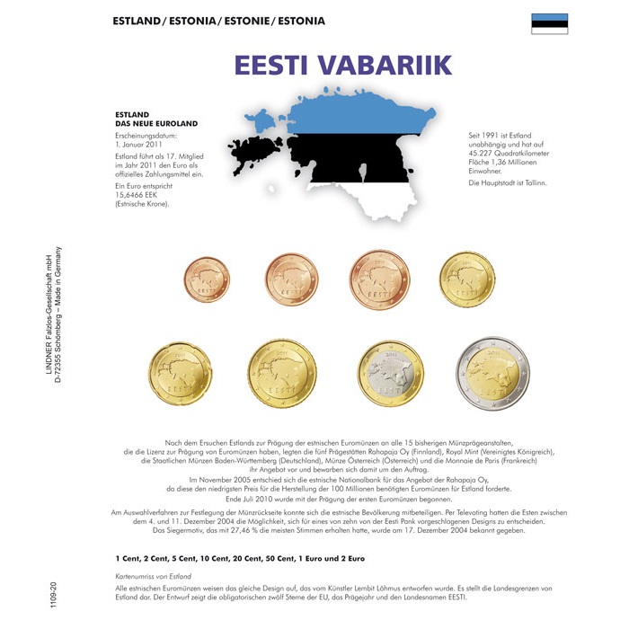 Pildileht mündilehega euromüntide aastakäigule (Eesti).