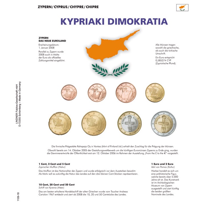 Pildileht mündilehega euromüntide aastakäigule (Küpros).