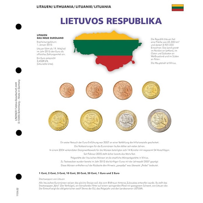 Pildileht mündilehega euromüntide aastakäigule (Leedu).