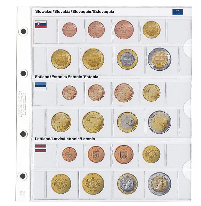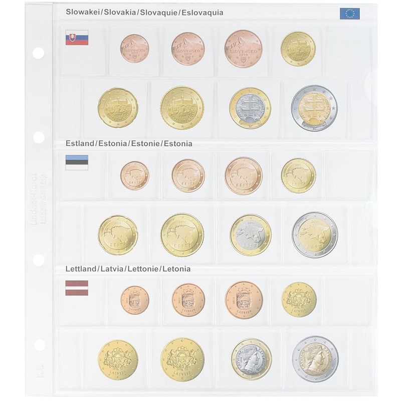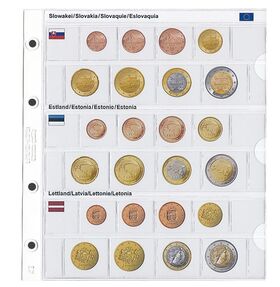 Pildileht mündilehega euromüntide aastakäikudele (Slovakkia, Eesti, Läti).