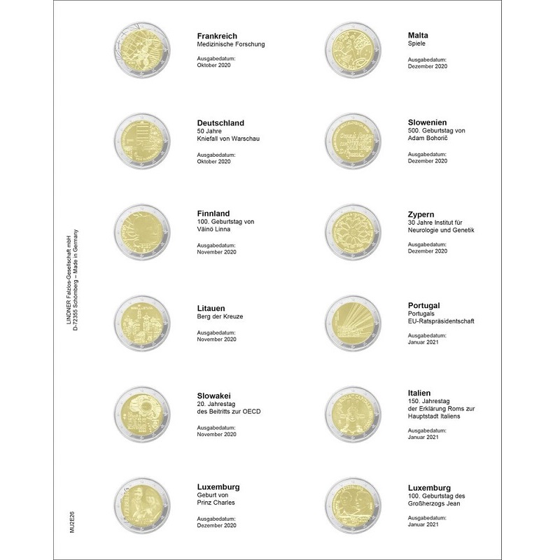 Pildileht mündilehega 2 €-müntidele.