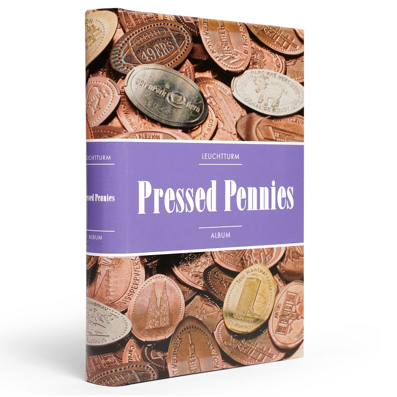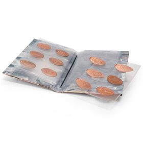 Taskualbum ROUTE "Pressed Pennies" pressitud pennide jaoks.8 lehte, 48 kohta diam. 33 mm.Formaat: 105 x 150 mm.Tootja: Leuchtturm (Saksamaa).