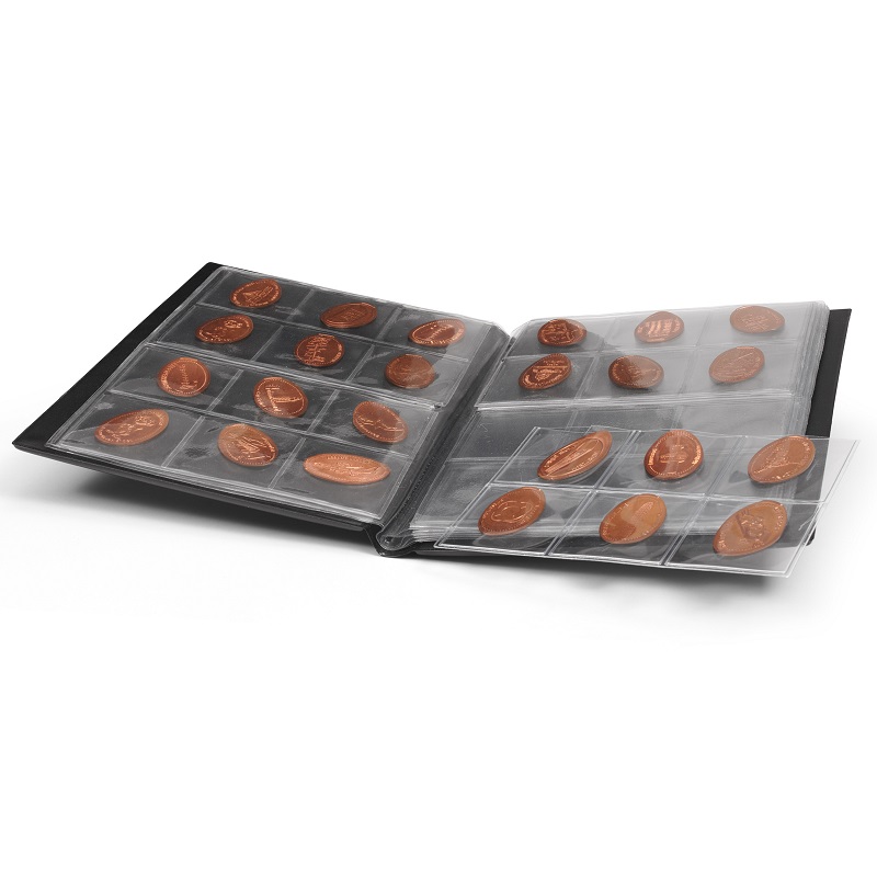 Taskualbum ROUTE "Pressed Pennies" pressitud pennide jaoks.8 lehte, 96 kohta diam. 33 mm.Formaat: 155 x 205 x 20 mm.Tootja: Leuchtturm (Saksamaa).