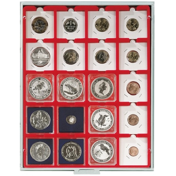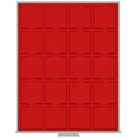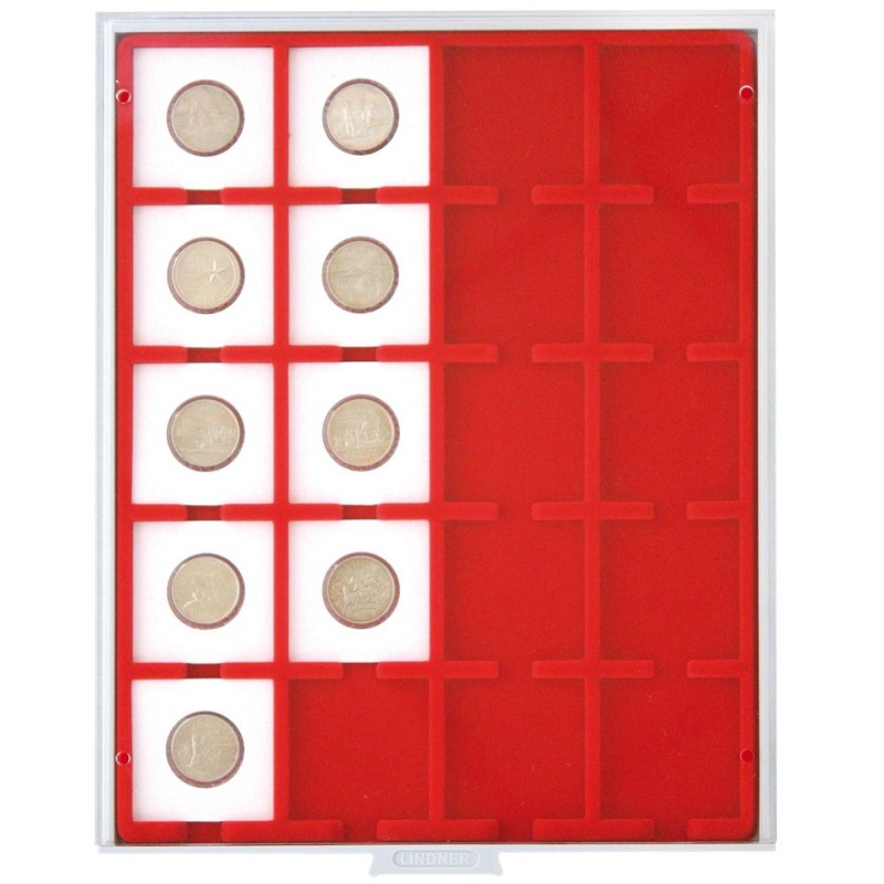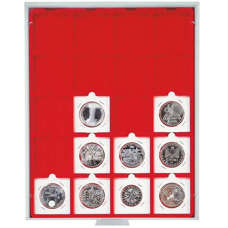 Standard - helepunane sametist alus, helehalli värvi käepidemega, pleksiklaasist raamis.