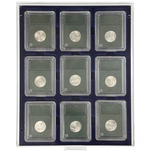 Marine - sinine sametist alus, helehalli värvi käepidemega, pleksiklaasist raamis.