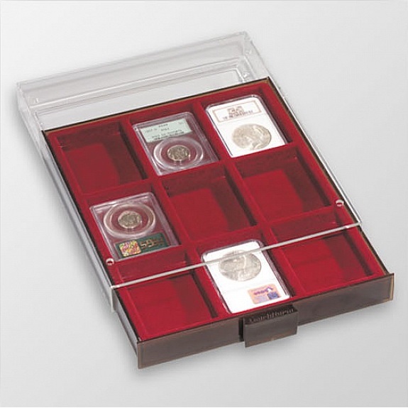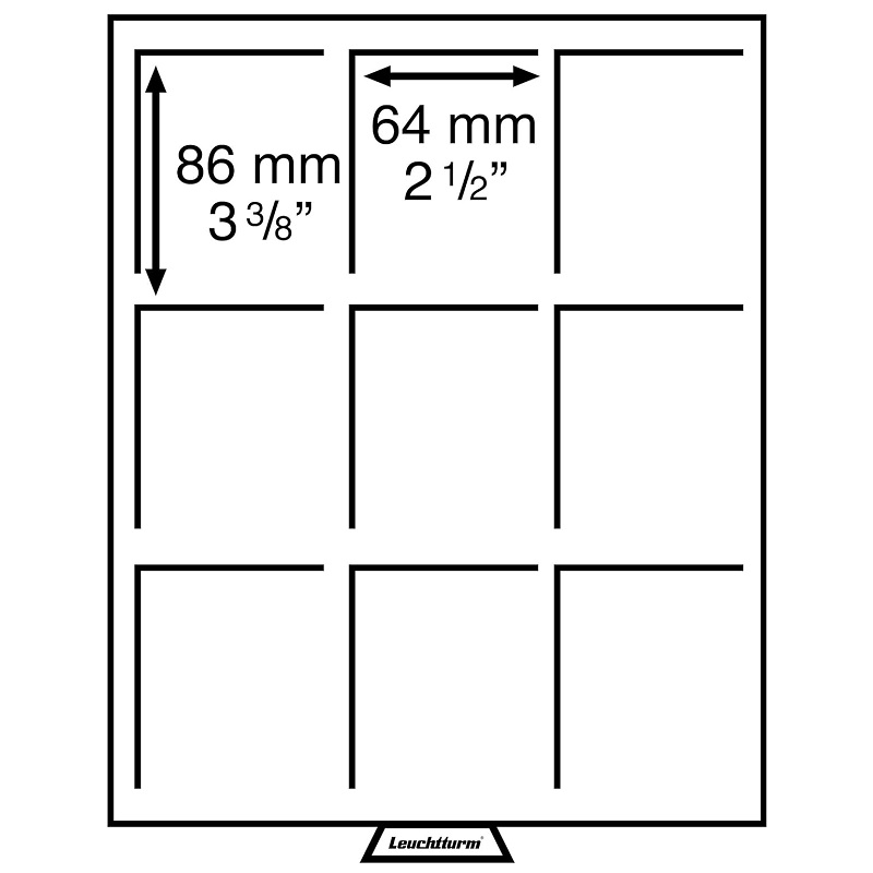 Kokku 9 kohta, mõõt 64 x 86 mm (NGC slabide jaoks).