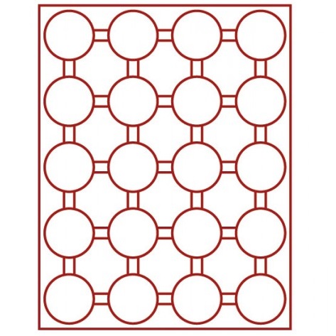 Kokku 20 kohta, läbimõõt 48 mm (kapslide välisläbimõõt).