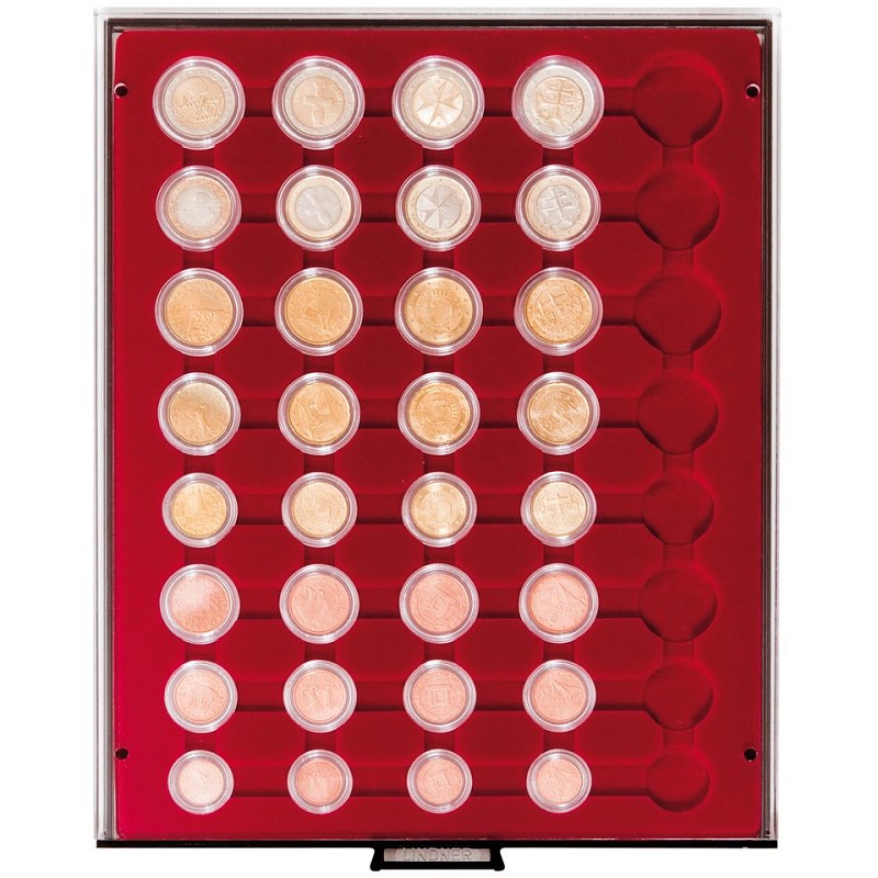 Mündisahtel ümmarguste aukudega kapslis müntidele.