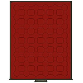 Standard - helepunane sametist alus, helehalli värvi käepidemega, pleksiklaasist raamis.