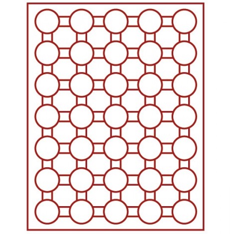 Kokku 35 kohta, läbimõõt 34 mm (kapslide välisläbimõõt).
