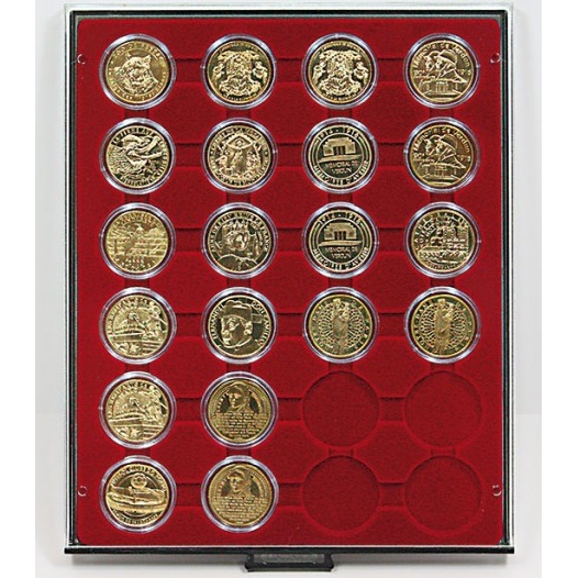 Mündisahtel ümmarguste aukudega kapslis müntidele.