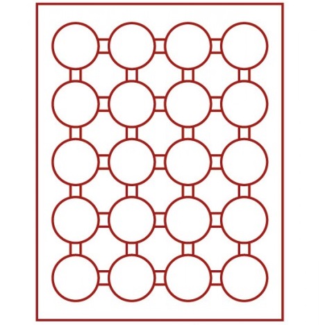 Kokku 20 kohta, läbimõõt 46 mm (kapslide välisläbimõõt).