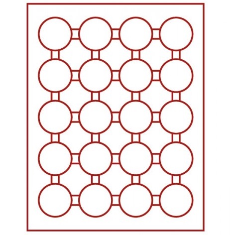 Kokku 20 kohta, läbimõõt 46 mm (kapslide välisläbimõõt).