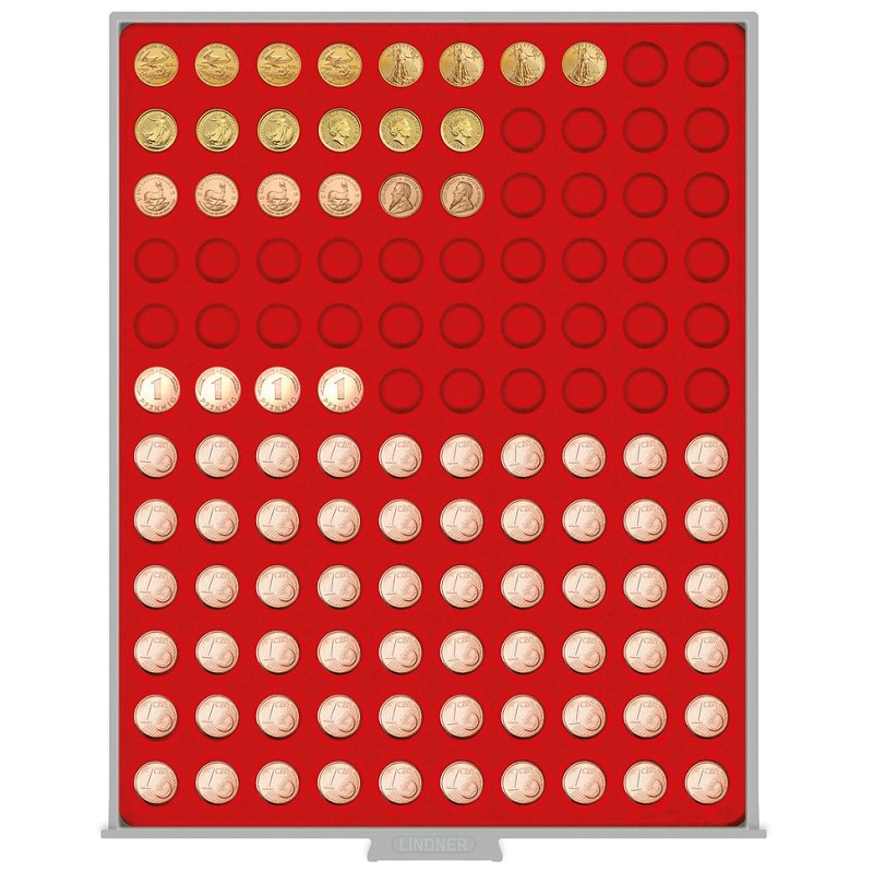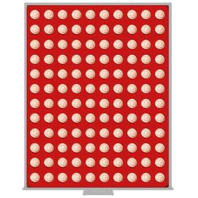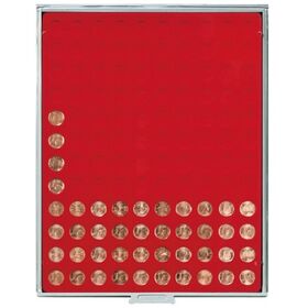 Standard - helepunane sametist alus, helehalli värvi käepidemega, pleksiklaasist raamis.