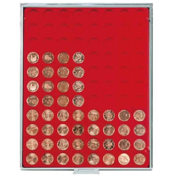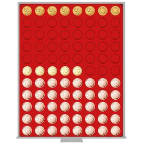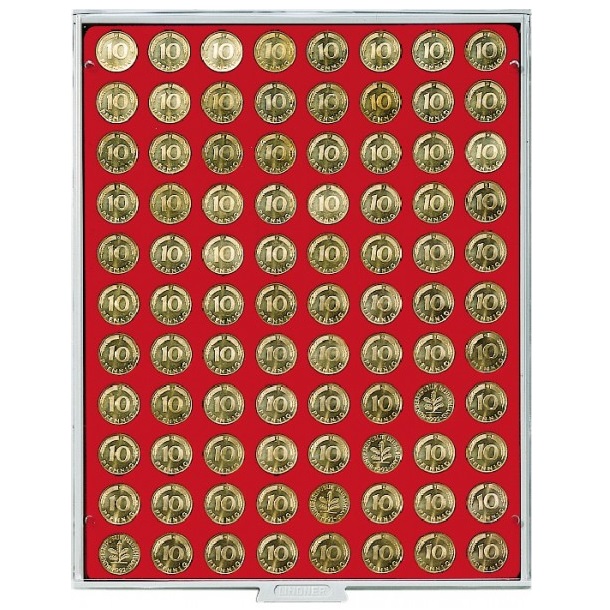 Standard - helepunane sametist alus, helehalli värvi käepidemega, pleksiklaasist raamis.