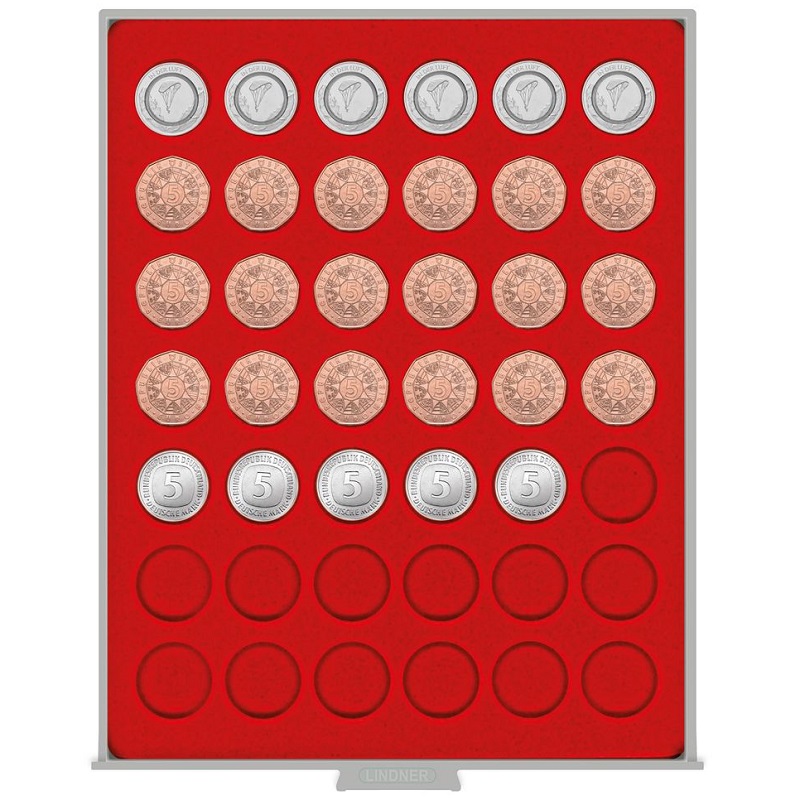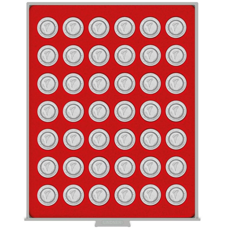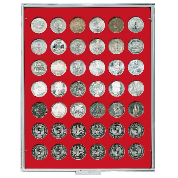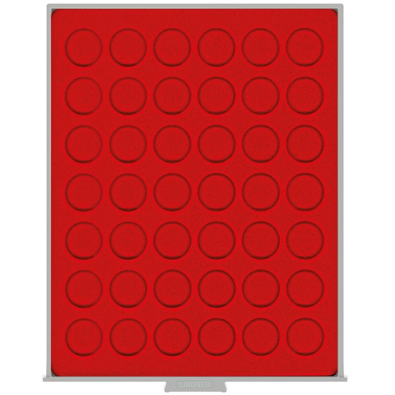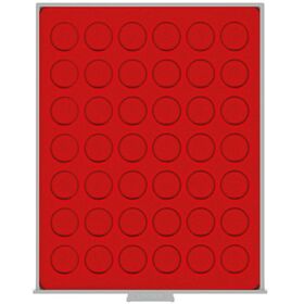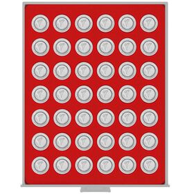 Standard - helepunane sametist alus, helehalli värvi käepidemega, pleksiklaasist raamis.