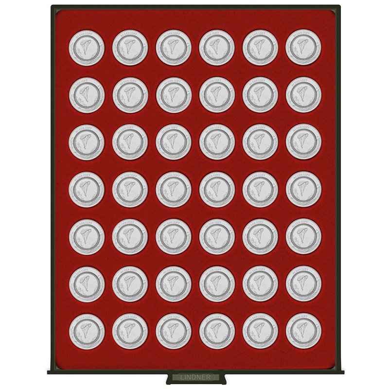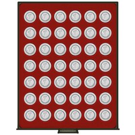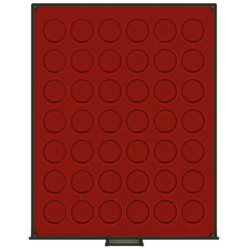 Standard - helepunane sametist alus, helehalli värvi käepidemega, pleksiklaasist raamis.