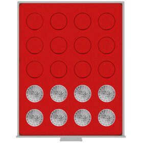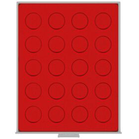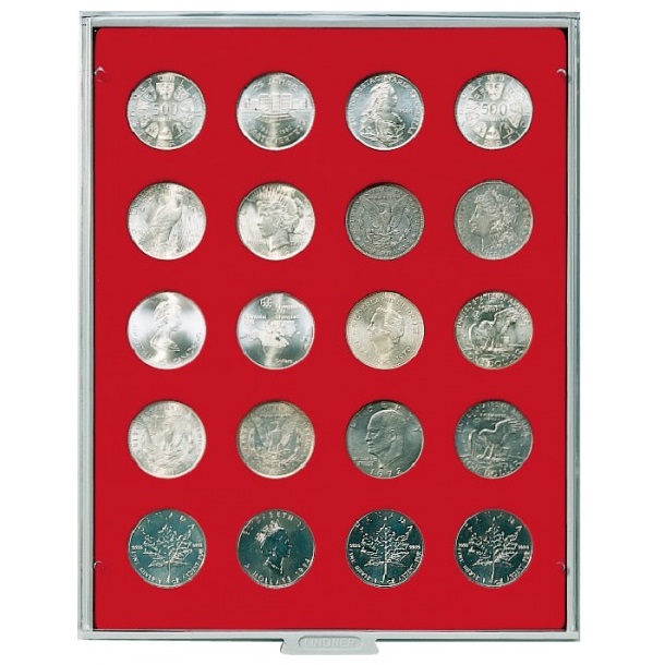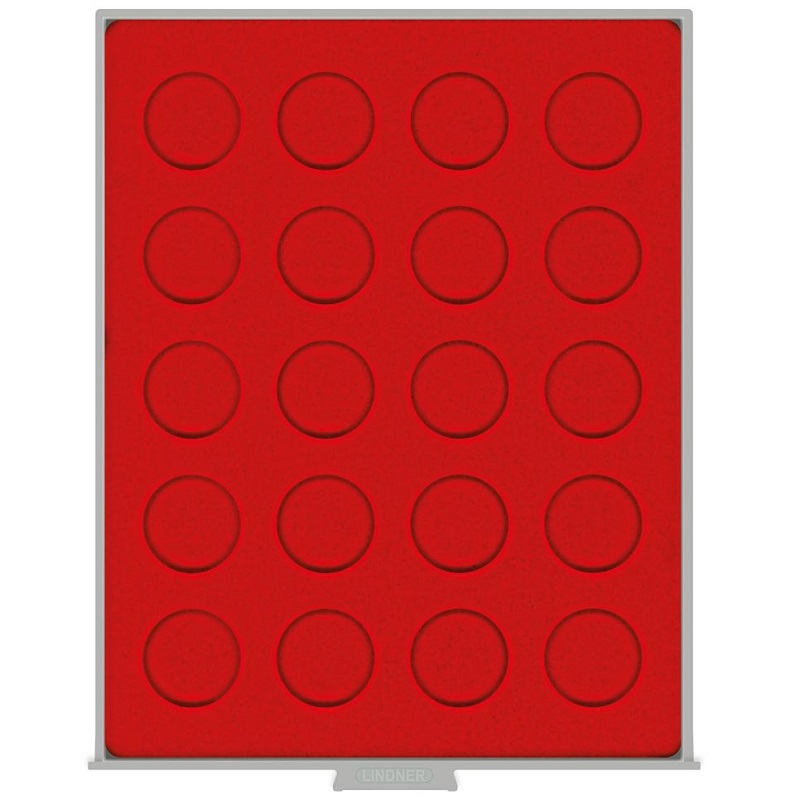 Standard - helepunane sametist alus, helehalli värvi käepidemega, pleksiklaasist raamis.