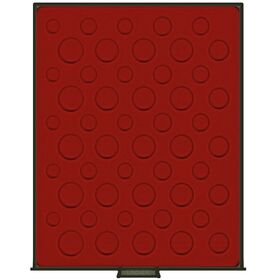 Standard - helepunane sametist alus, helehalli värvi käepidemega, pleksiklaasist raamis.