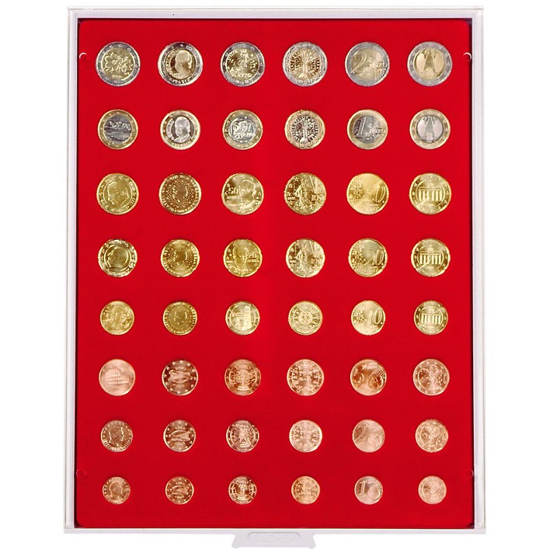Standard - helepunane sametist alus, helehalli värvi käepidemega, pleksiklaasist raamis.