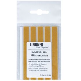 Nimesildid LINDNER Schildfix märgistamiseks.5 läbipaistvast polümeerist taskud, pikkus: 90 mm.10 paberist sildid märgistamiseks.Tootja: Lindner (Saksamaa).